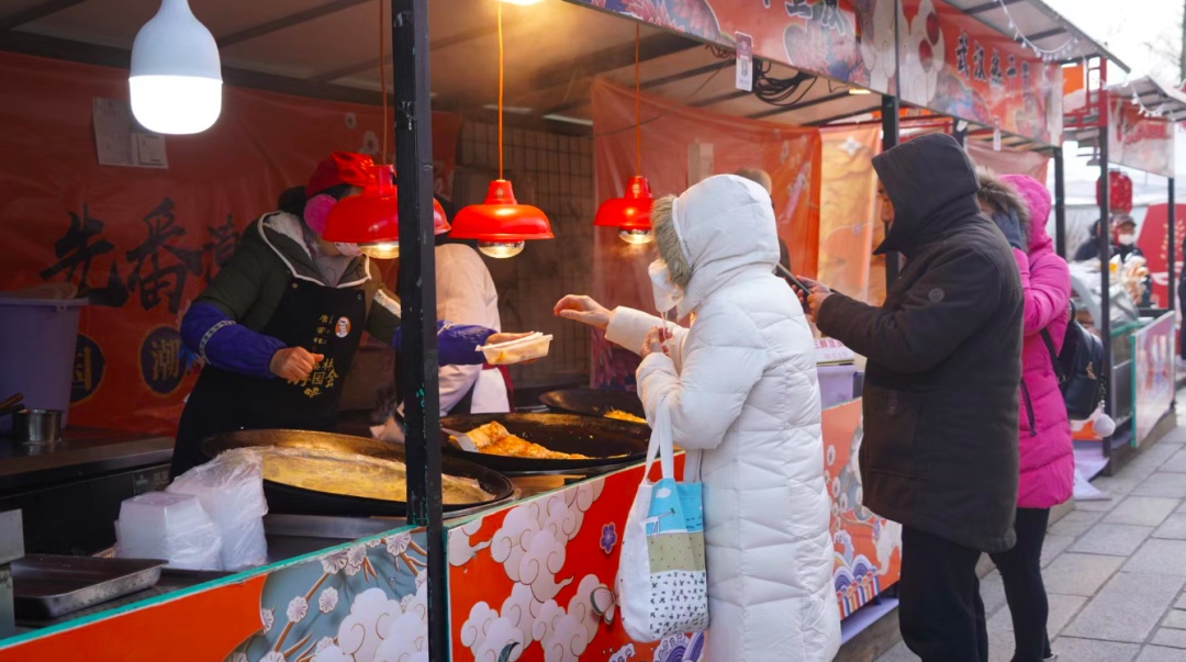 今年,枫泾古镇与以往不同的是,大年初三枫泾镇南镇非遗市集正式开市。新颖的美食又为古镇聚拢一波人气,成为了古镇魅力的新“爆点”。“以往枫泾的游客北镇比南镇多,今年以长三角老品牌文化街区为亮点,通过增加不同的元素,让游客来南镇感受不同水乡魅力。”枫泾古镇旅游公司工作人员介绍说。