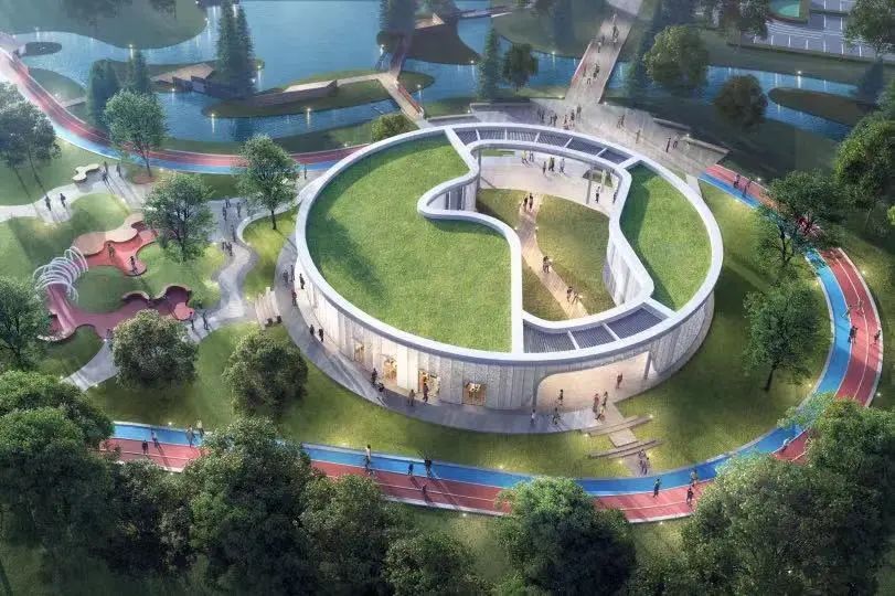 位于公园北侧的游客休憩驿站,则以“造园”为核心理念,利用视觉层高变化,设计了流线型的建筑形体。“流线型的建筑形体有效利用了自然通风与日照资源,白天的自然光线透过幕墙完全利用,同时利用智能照明技术,将阳光通过太阳能光伏板转换为电能,从根本上降低了建筑的能耗,提升了能源利用效率,大大降低了碳排放。”项目相关负责人介绍说。