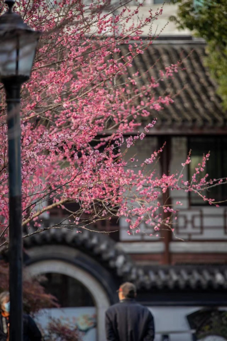 历经2020、2021两年精心打造,园内的梅花从原有的78棵增至现在的梅花174棵,涵盖宫粉型、洒金型、朱砂型直枝梅,垂枝梅,龙游梅及梅花老桩等。梅花绽放之际,总是吸引不少市民游客前来观赏拍照。