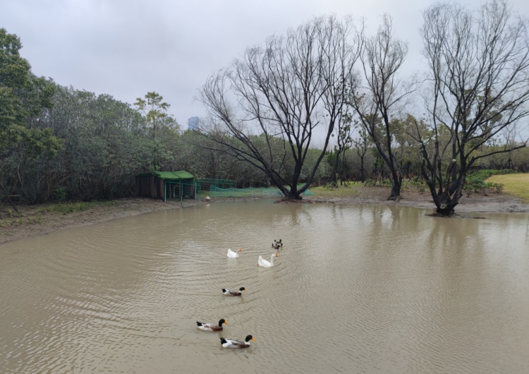 公园近高科西路入口有一处木平台,是园内人气最旺的地方,因为这里有深受市民游客喜爱的一对大白鹅,看着它们在水面嬉戏、在草皮上整理羽毛,向人们展示无忧无虑的生活。