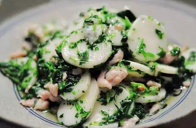 会选用荠菜冬笋肉丝炒年糕