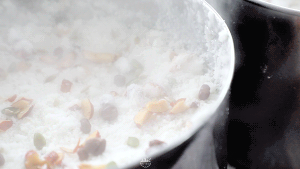 拌入糖及枣子、核桃肉