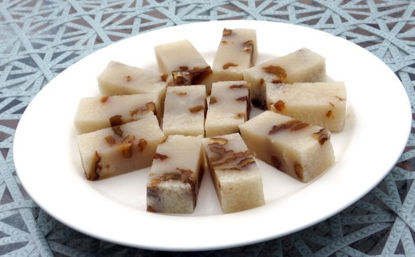 素糕雪白细腻、糯而不粘