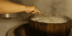 用专门的杉木桶作为蒸具