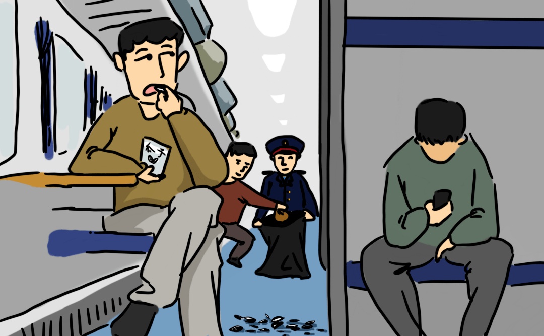 春运的时候,火车是大家乘坐的主要交通工具之一。但是近些年来火车上的不文明行为,特别是随意丢弃垃圾的行为,时有发生。比如吃东西时乱丢果壳、瓜子皮、纸巾等等,制造的垃圾几乎堆满了列车座椅下的空隙。