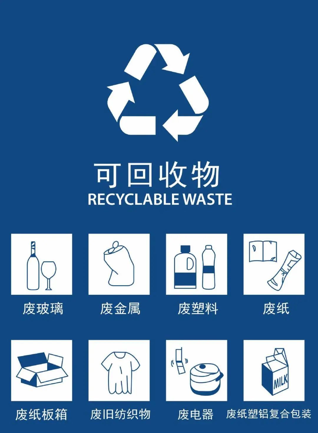 矿泉水瓶、易拉罐、牛奶盒、塑料盒、包装纸盒等。