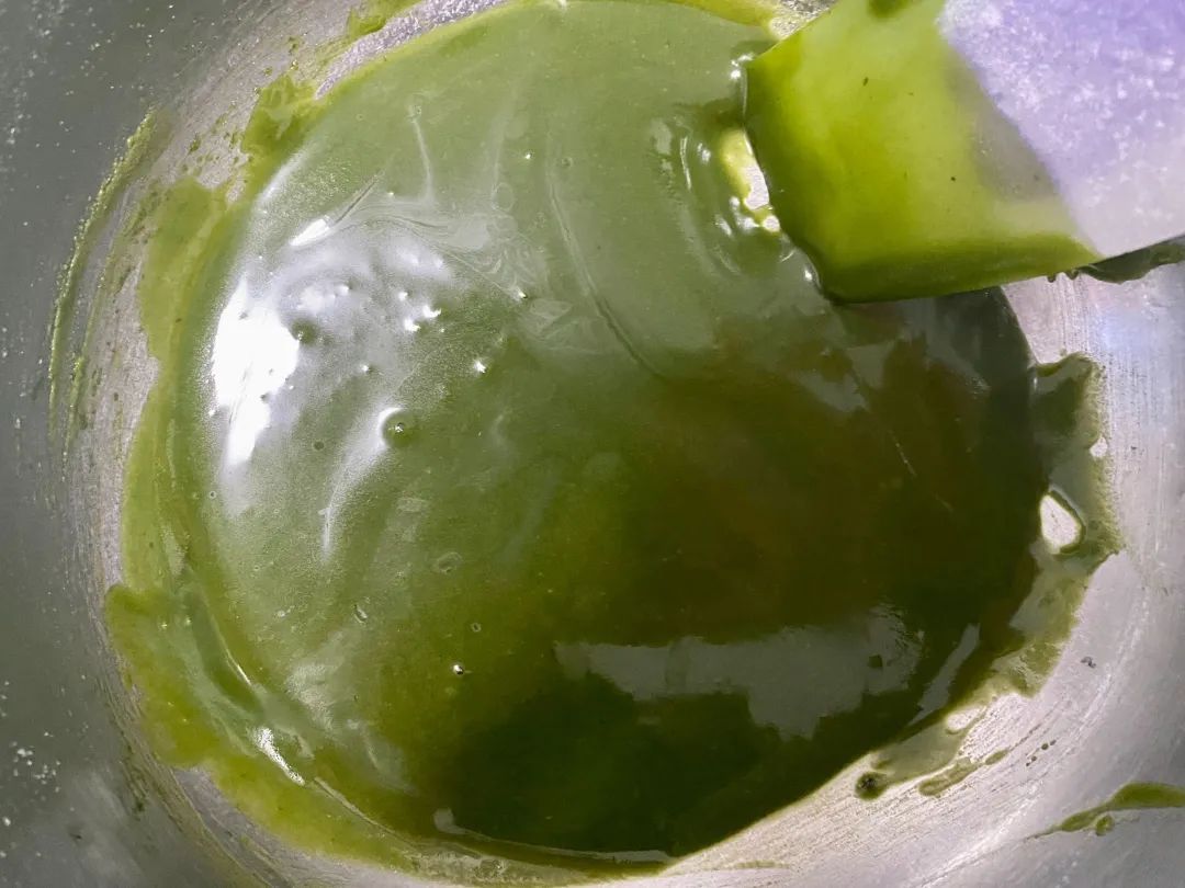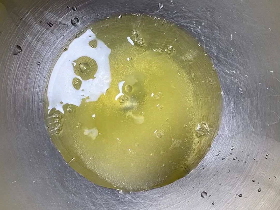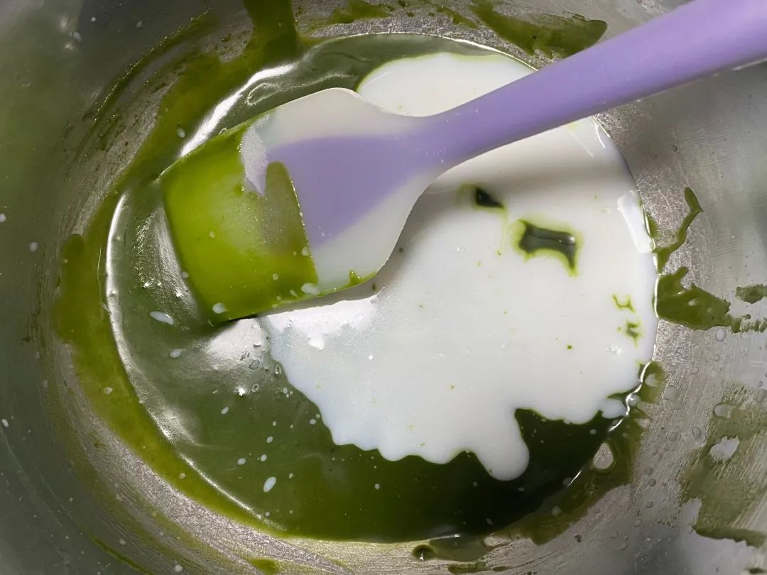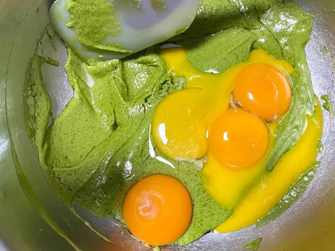 4.将鸡蛋的蛋清蛋黄分离,蛋清备用,蛋黄加入面糊,搅拌均匀。