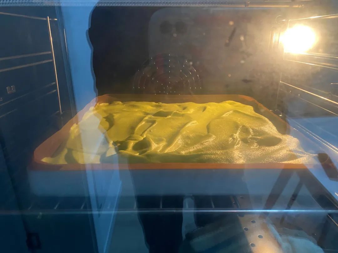 工具:打蛋器、刮刀、28*28烤盘、油布。