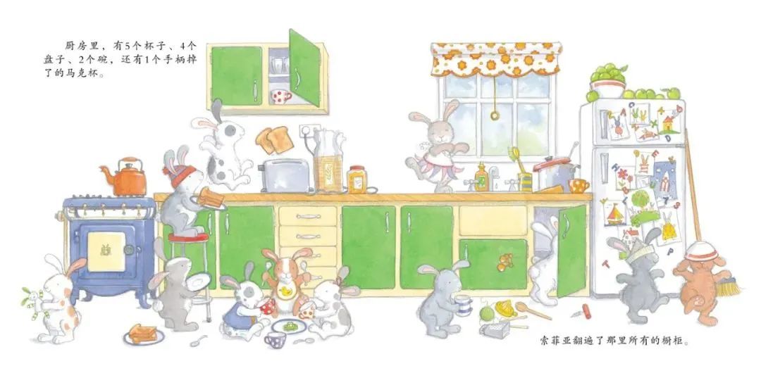当12只活泼的兔子住在同一屋檐下时,房间中立刻生机勃勃,充满乐趣。12个杯子、12把椅子、12个相框、12张床、12条毛巾……所有日常生活用品都有12件!