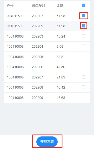 8.勾选需要开票的账单,点击开具发票;