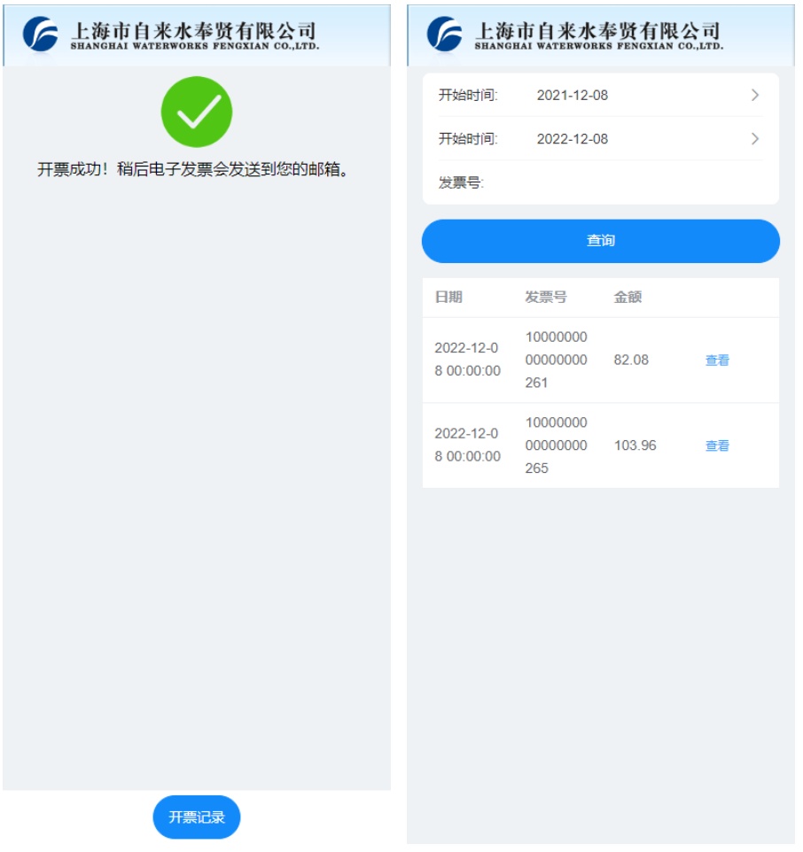 开票成功,稍后电子邮箱会发送到您的邮箱。点击下方开票记录,可查看已经开过的发票。