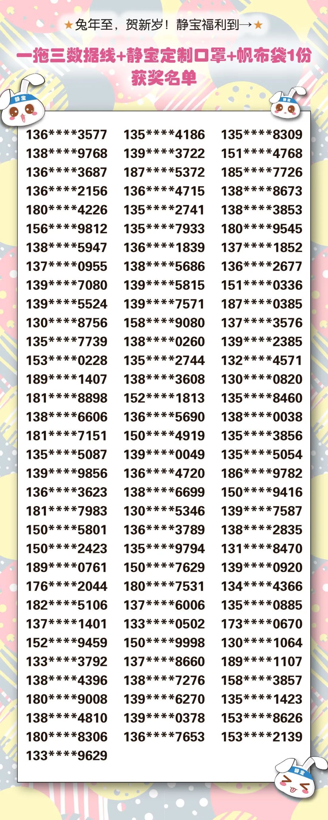 此前静宝《兔年至,贺新岁!静宝福利到→》推送的中奖名单已经出炉!详见↓