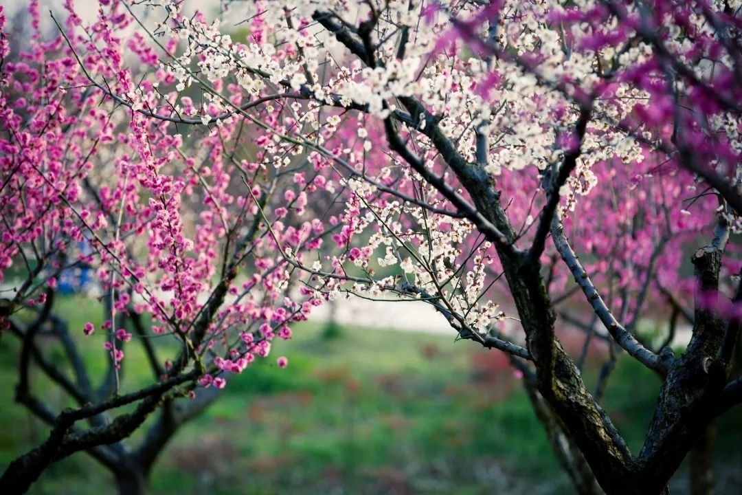 或白或红的梅花,搭配着头顶的“金山蓝”,美得沁入人心!繁星点缀满枝头,随手一拍都是最鲜艳的颜色。