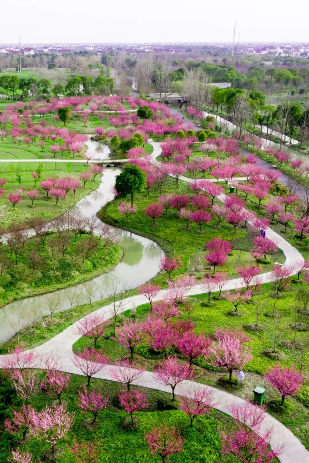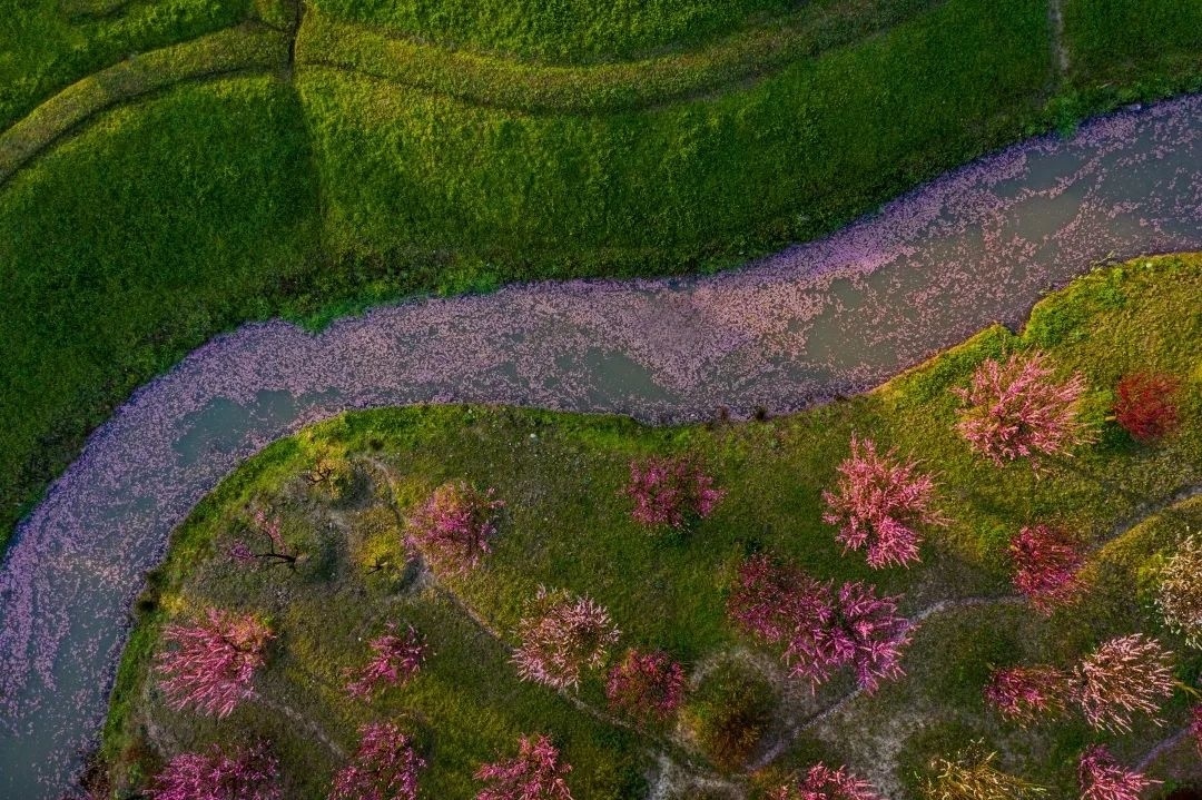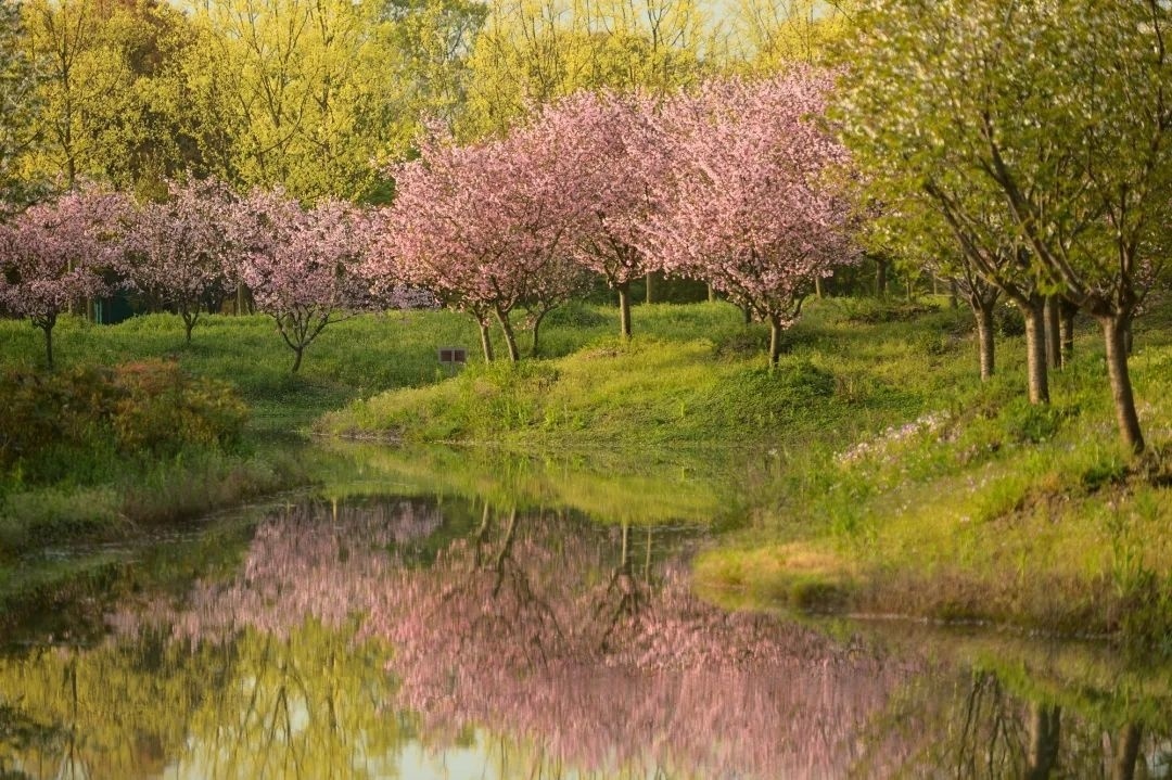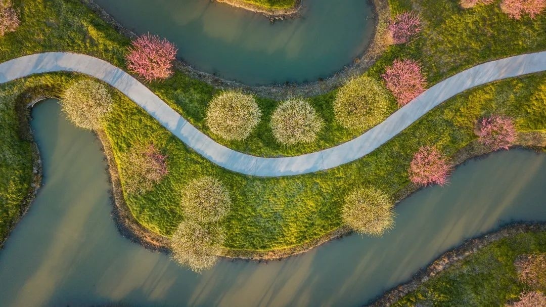 临水种植的株株梅树下,花逐水流,水漾花影,构成“池水倒窥疎影动”的动人景观。