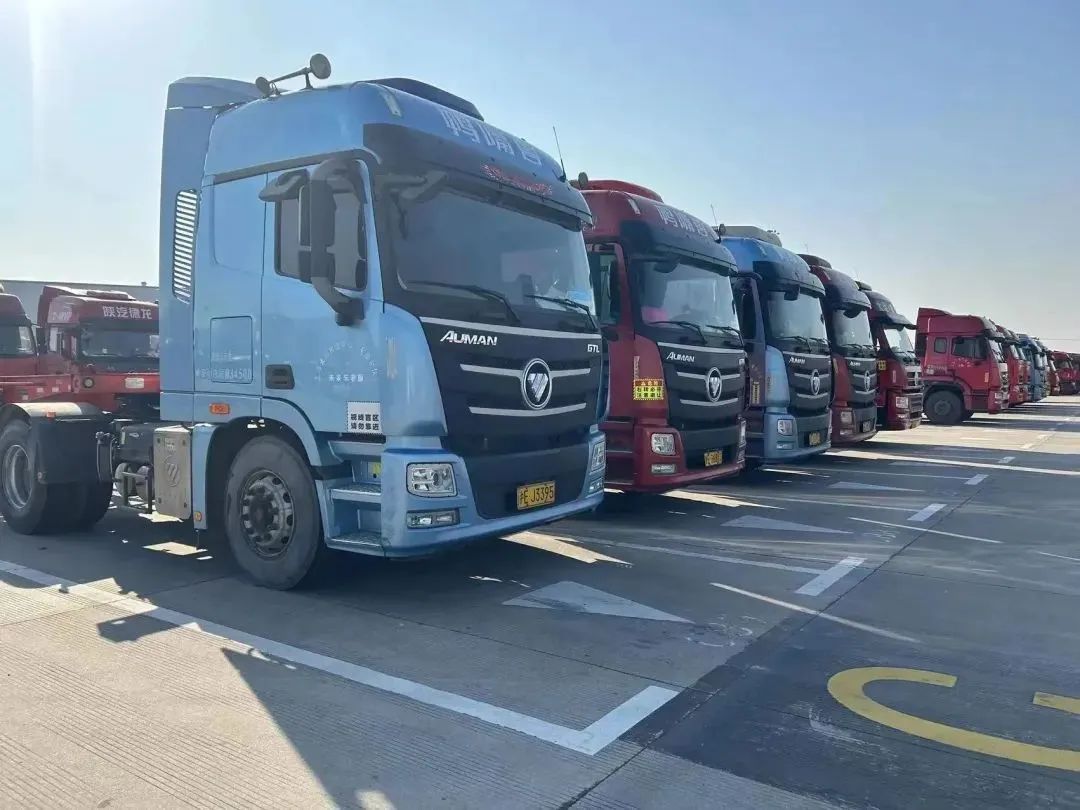 午后的临港集卡服务中心,300多辆各式集装箱卡车在停车场整齐排列,等待着它们主人的回归。