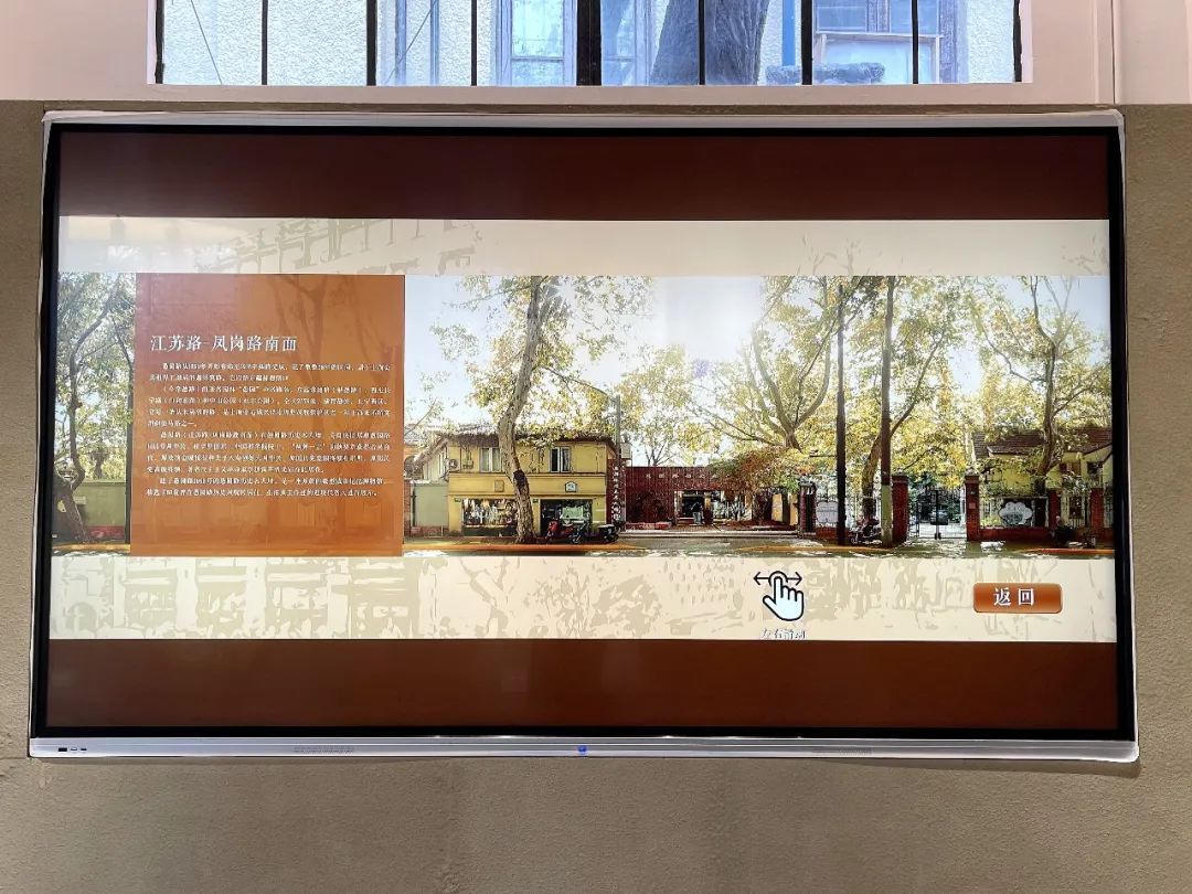 大屏幕内有愚园路(江苏路-定西路)两侧的长幅照片,以供游客互动体验。