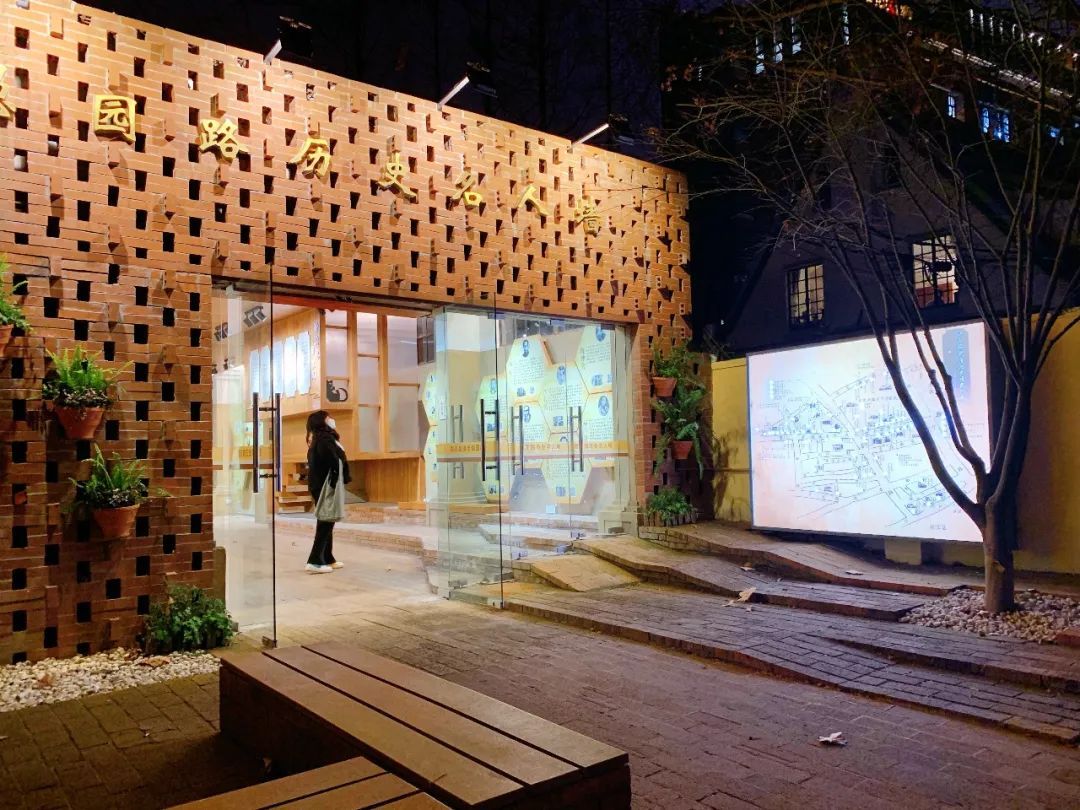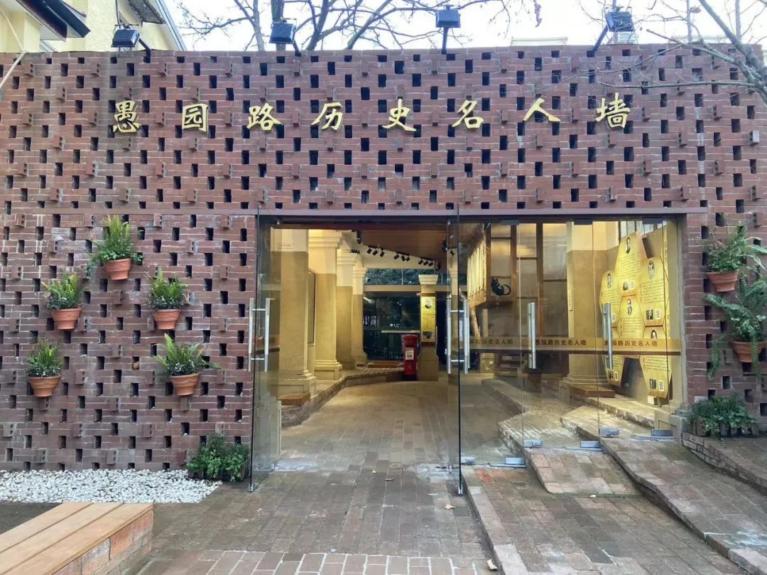愚园路历史名人墙原址曾是一家开了近20年的眼镜店,2015年长宁区政府推进愚园路城市更新,江苏路街道将其打造成为供市民免费参观的开放式微型城市记忆馆。
