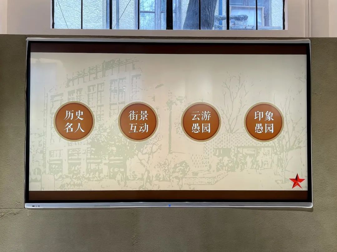 梧桐树下,行人匆匆而过;岐山村中,居民相互闲谈;愚园路上,游客手持相机拍摄……名人墙上的大屏幕中,放映着愚园路上的生活场景,透着浓浓的烟火气。据悉,此次更新保留了大屏幕的设置,通过影像传播,为参观者生动诠释着愚园路上的人文故事。