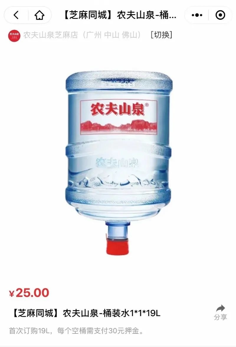 据了解,本次提价前,农夫山泉曾在上海地区对19L桶装水也采取了提价措施,从2022年1月1日起由26元/桶调整到28元/桶。与此同时,记者查询了农夫山泉19L桶装水在广州本地的售价,目前该产品为25元/桶。