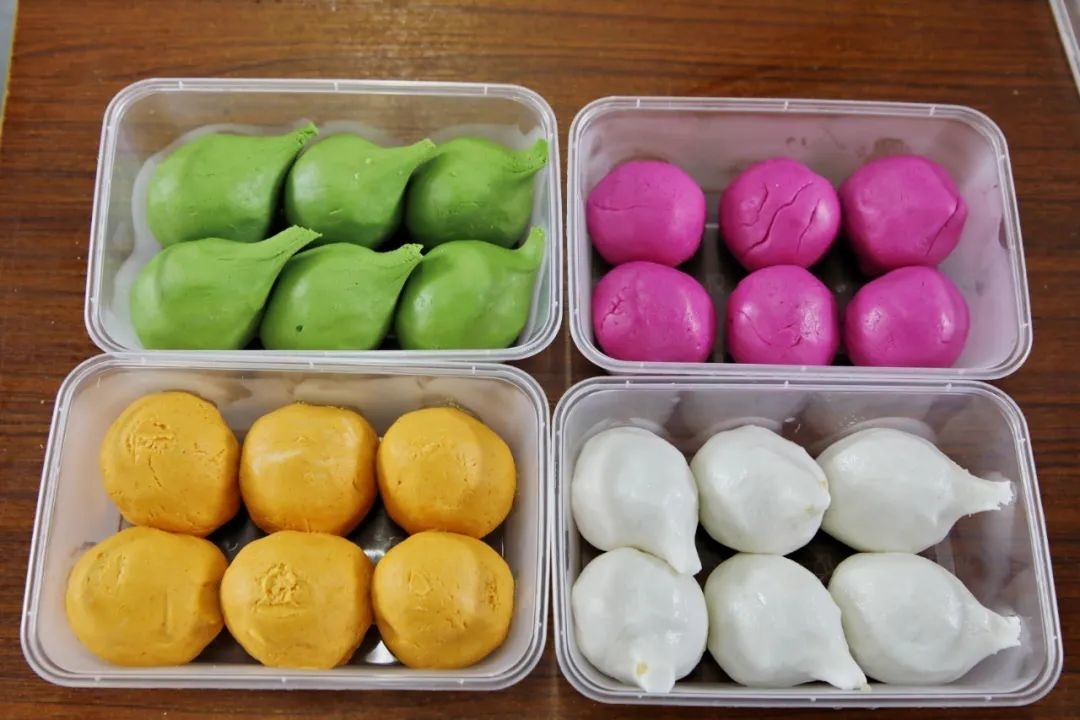 作为一家开了近20年的老店,谈起为何受到那么多食客的欢迎,枫泾古镇将军食府负责人范金姬和记者谈起了自己的“汤圆经”。“从皮到馅料我们都是纯手工制作,汤圆好不好吃首先要看皮,其次就是馅料。”范金姬一边展示刚刚揉好的面团一边告诉记者,“揉糯米粉,水和粉的比例很重要,揉得不好容易开裂,要先烫面然后再加入适量的水和面。以前我们只做纯色的,这几年我们尝试将火龙果汁、南瓜汁放进糯米粉里面,这样做出来的彩色汤圆也很受顾客欢迎”。虽然纯手工制作的汤圆工艺复杂,在制作上更加耗费时间,但保证了汤圆的口感。