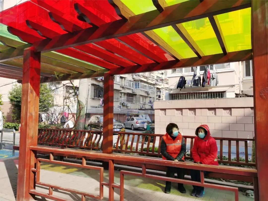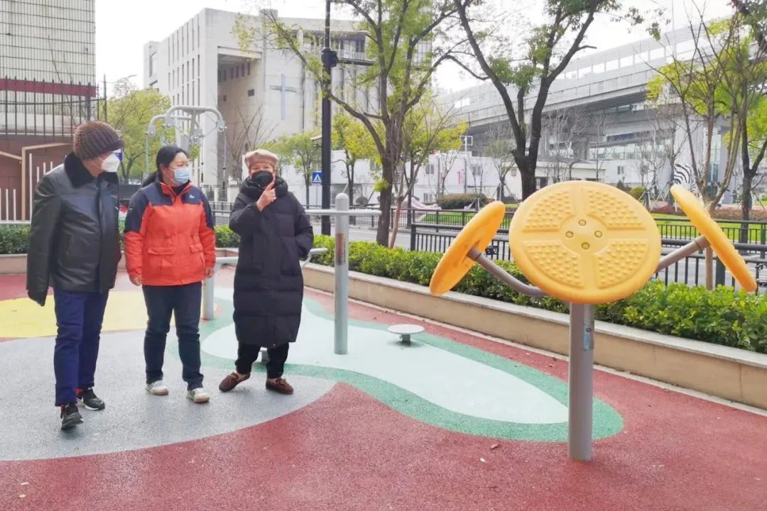 新宁小区位于长宁路、哈密路交接处。提起居民喜爱的小区“打卡点”,哈密居民区党支部书记脱口而出,“那肯定是西边的健身休闲广场,太阳好的时候,大家都爱过去,人气很高的。”休闲广场为中式庭院风格,整体设计简洁美观,集健身、休憩等功能为一体,不少老人已早早来“报到”。