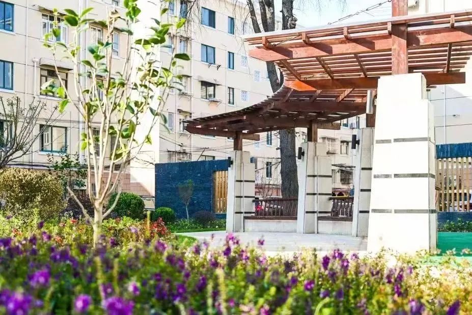 小区入口处,柏油小道平整宽阔,上面的漆线整齐划一,人性化的“人车分流”设计给居民增添了不少安全感。近百幢住宅旧貌换新颜,屋内管道全部更新换代,楼道铺设防滑塑胶地膜。房顶及住宅入口处也均有新意,利用琉璃瓦、斜坡等元素,为原有建筑增添了艺术美感。