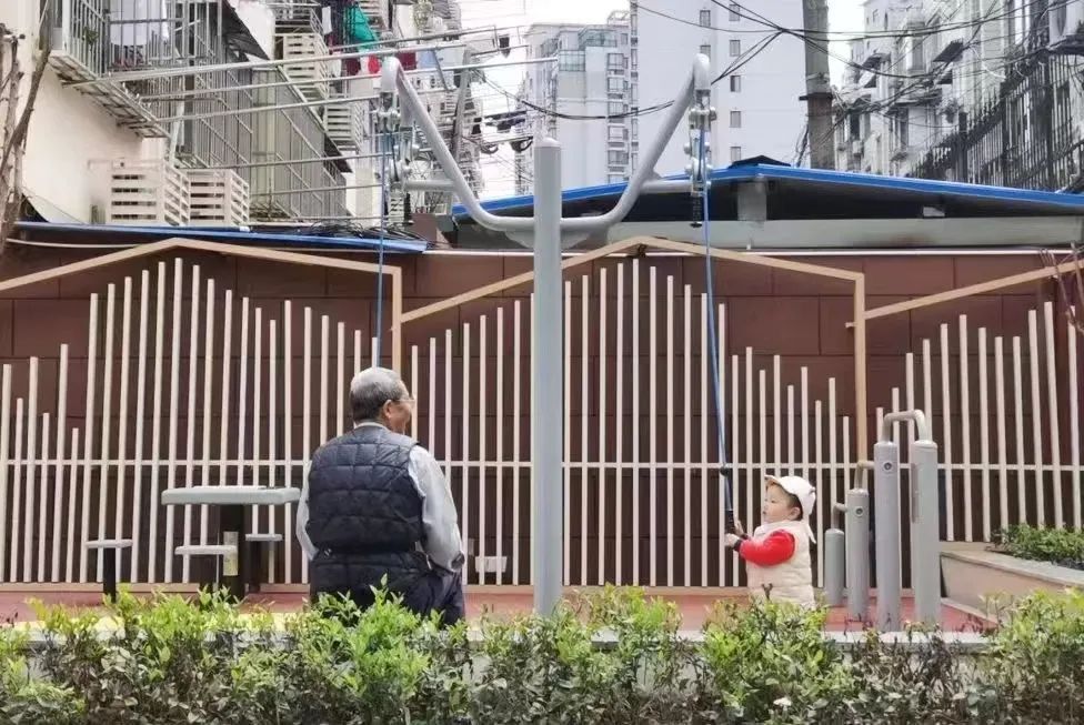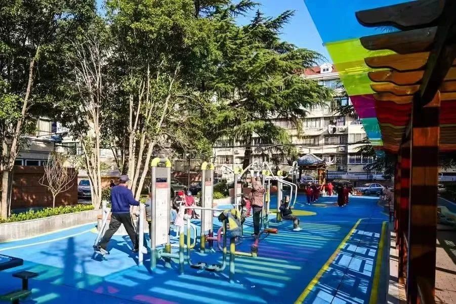 同为老住户的刘阿姨争着说道,“以前小区的健身器材零零星星,现在可以下棋,也能运动健身,再看看风景,心情都舒畅了。广场还有木质座椅和防滑地面,为老年人考虑很贴心。”
