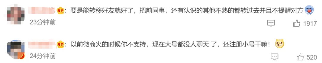 小编注意到,对于该功能多数网友表示支持,有网友提出“要是能转移好友就好了,把前同事,还有认识的其他不熟的都转过去并且不提醒对方。”