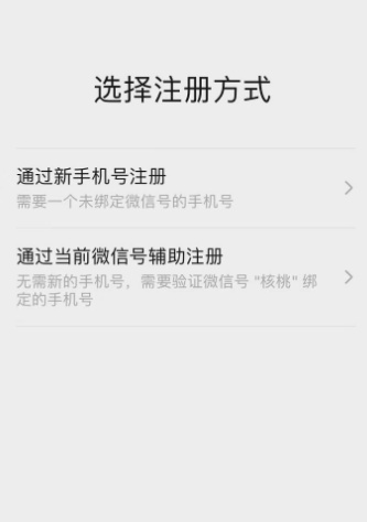 再点击“注册新账号”,在注册方式中选择“通过当前微信的手机号辅助注册”: