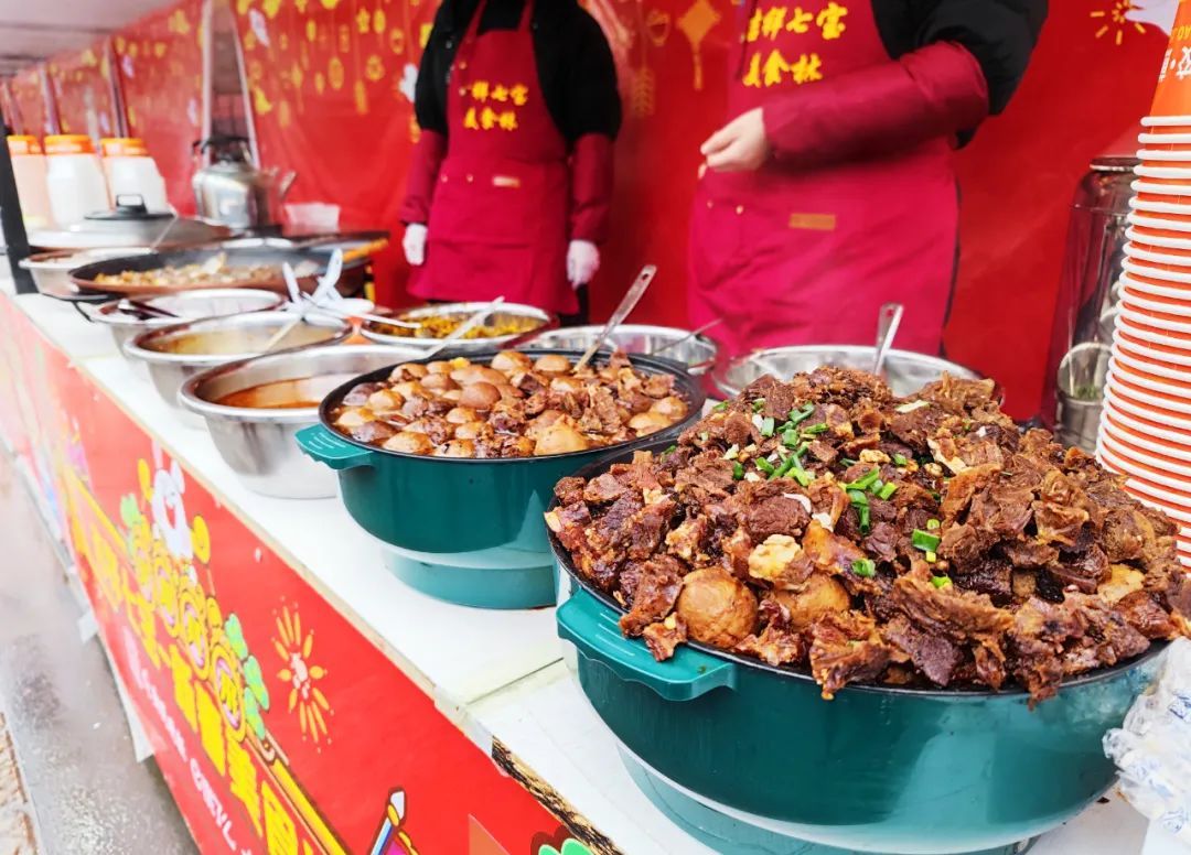 在横沥路上,“吉祥七宝 新春美食汇”仍在持续。从老北京冰糖葫芦、重庆酸辣粉、武汉热干面、大连火爆鱿鱼、天津狗不理等地方知名小吃;到上海老街臭豆腐、七宝特色烤肉等本土美食;从蒙古烤肉、韩式炒年糕等异域口味,道苕皮豆干、鸡蛋仔冰淇淋等新晋网红,游客可以一站式打卡各地美食。
