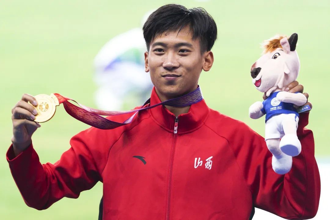 2021年9月22日,山西队选手李俊霖在第十四届全运会颁奖仪式上