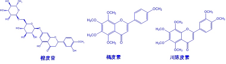 橙皮苷、橘皮素和川陈皮素的化学结构