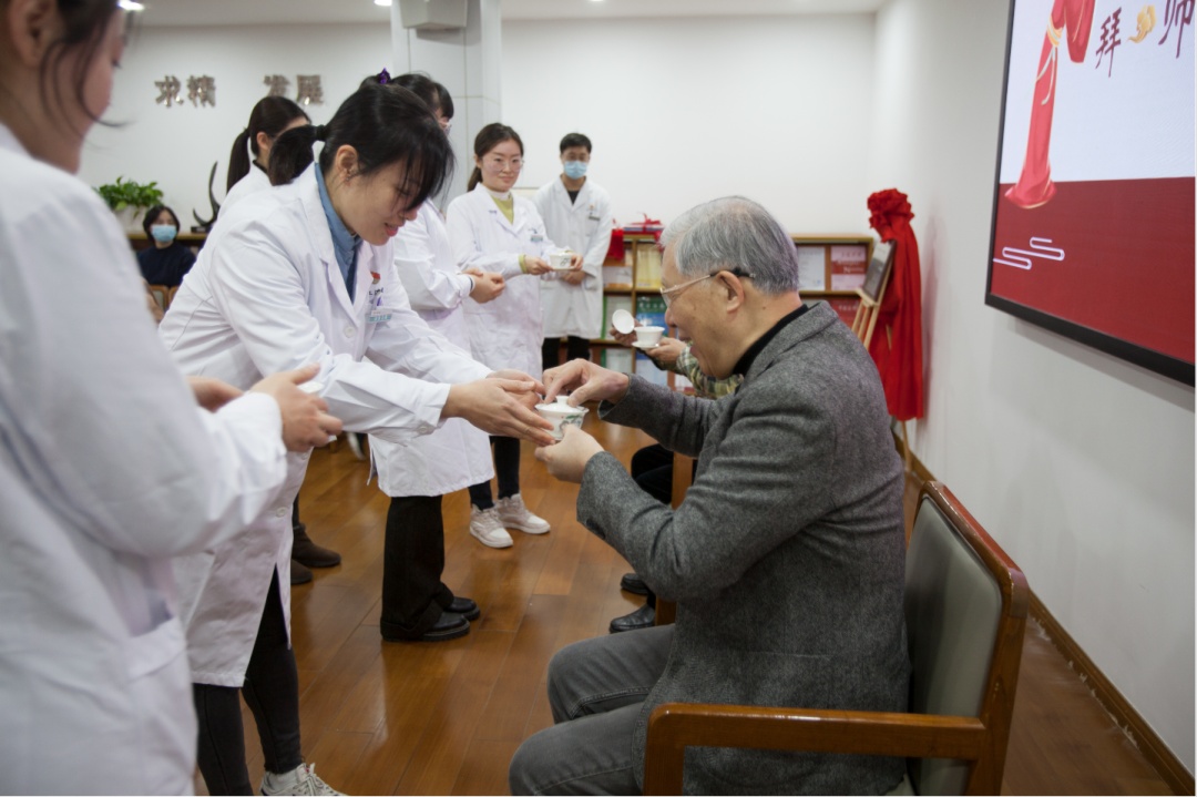 揭牌仪式现场,还举行了传承拜师仪式。学生们向老师献上鲜花、奉拜师茶、聆听师训……每一位学术继承人将通过学习名老中医经验,打造名老中医理论体系,提高自身临床诊疗技术水平,传承深厚的中医文化。