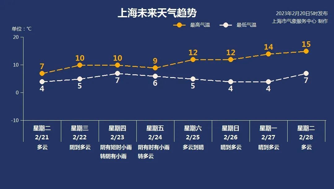 2月21日(周二):多云,4~7℃