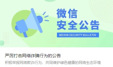 近日,微信安全中心发布最新公告:严厉打击网络诈骗行为,对确认存在欺诈行为的帐号、支付账户进行封禁、冻结等处理。