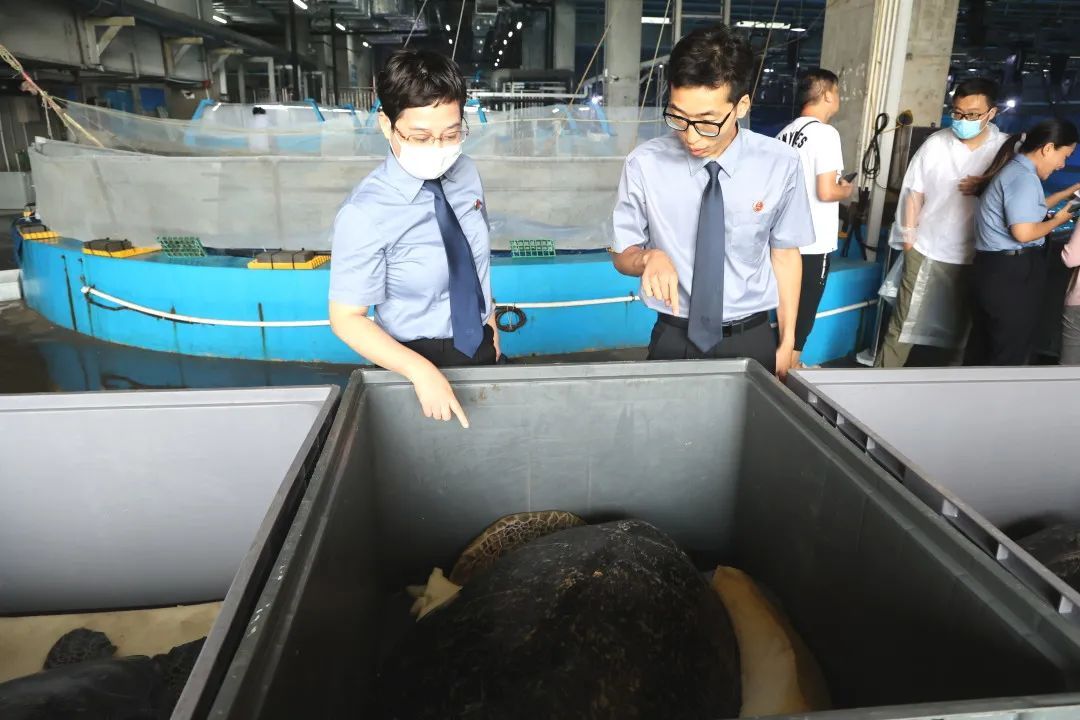 这一天,浦东新区检察院公益检察官曹志兰见证了海龟的“回家”之旅。这是一起非法收购运输出售珍贵濒危野生海洋动物(海龟)公益诉讼案。涉案海龟其中几只被寄养在海洋馆,为了让海龟“回家”,检察官多方奔走,就如何救助、放生涉案海龟等事项多次进行磋商。在浦东新区检察院、浦东新区农业农村委员会等多方协作下,海龟们终于将乘坐专机飞往海南,回归海洋之家。