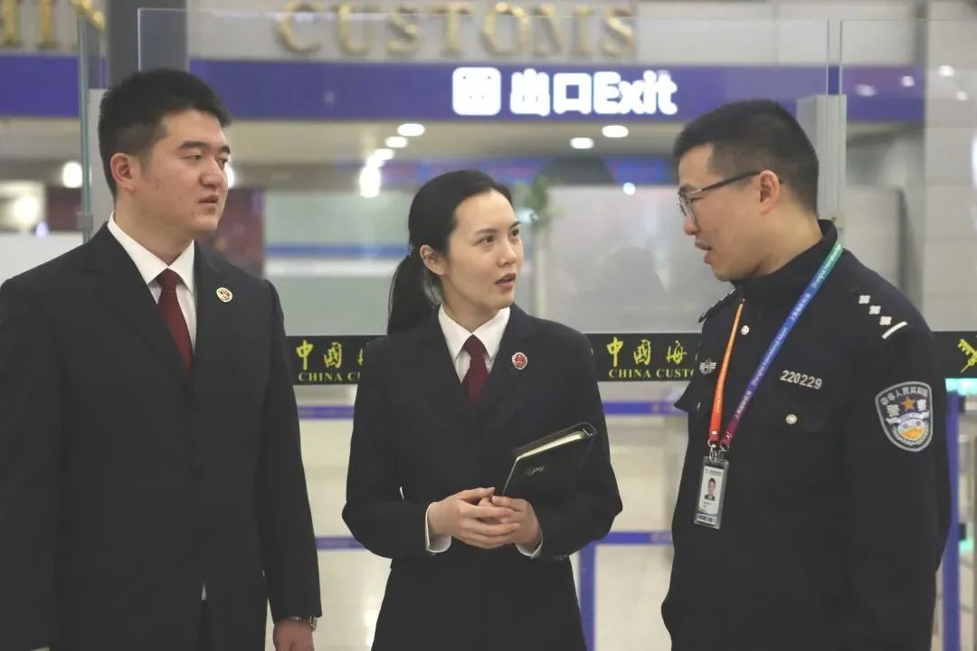 上海市人民检察院第三分院检察官沈迪和同事来到浦东国际机场行李转盘大厅,针对某走私案嫌疑人口供情况进行现场调查。在之前的讯问中,犯罪嫌疑人对自己被抓过程、地点有诸多辩解,为核实其真实性、合理性,他们联系了机场海关缉私分局工作人员核查情况,严厉打击走私犯罪,全力守护国门安全。