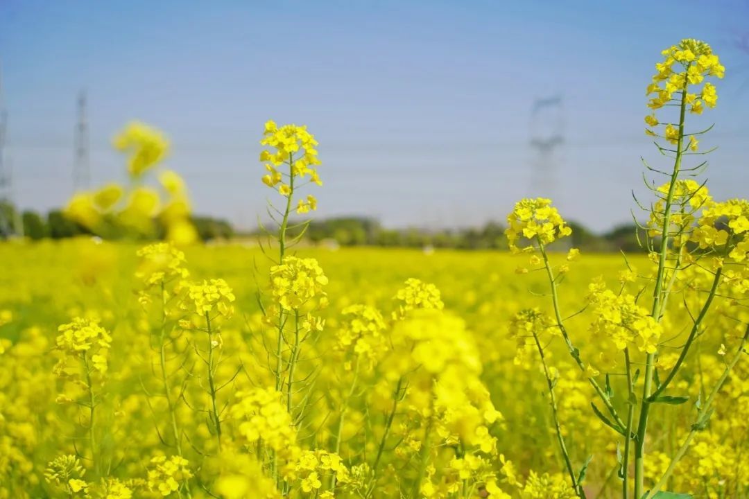 在和睦村,一株株明黄色的油菜花竞相开放,迎着暖风拂煦,灿烂夺目,一片金浪滚滚的花海在阳光下随风涌动,与碧蓝的天空形成强烈的色彩对比,把乡村妆点成一幅美丽的油画,让观光的游客仿佛置身“莫奈花园”。