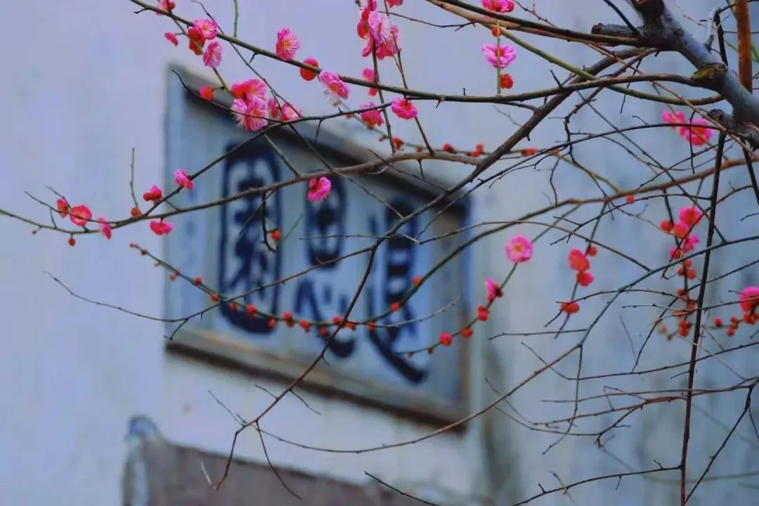 “忽然一夜清香发,散作乾坤万里春。”春意起,知道书院的梅花在墙边树下悄然绽放,欲以一抹红妆压群芳。