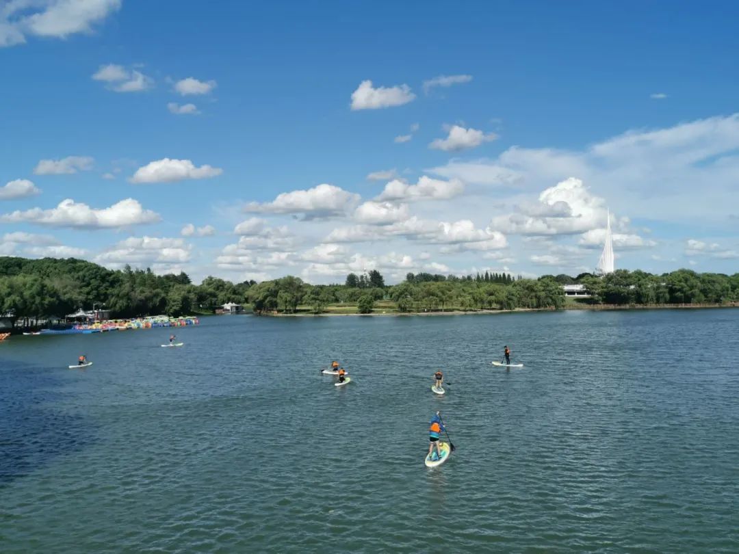 这里,完全不用担心人潮带来的空气不流通感,目光所及皆是绿色,水域浩淼、植被苍翠,美不胜收!白天沐浴在阳光下,在野餐垫上铺满精心备好的食物,或是玩会儿飞盘,或和可爱值拉满的萌宠们来一次亲密互动。