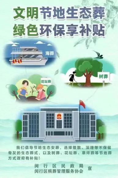 二、倡导节地生态安葬。崇尚绿色、生态、环保理念。大力推行树葬、花坛葬、壁葬、草坪葬、骨灰深埋、海葬等节地生态葬式,促进人与自然和谐发展,更好造福子孙后代,发扬勤俭节约美德,摒弃攀比浪费陋习,做到“追思先人,简朴为本”。