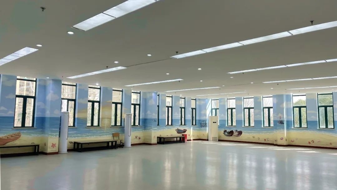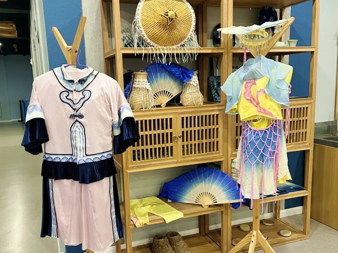 传习工作室位于高新区社区文化活动中心。进入传习工作室,首先映入眼帘的是金山三岛,随后金色的沙滩、蔚蓝的天空和大海、阳光普照的韵律以及乳白色的小贝壳……通过墙绘的形式使得整个传习室呈现出一种海洋风格。