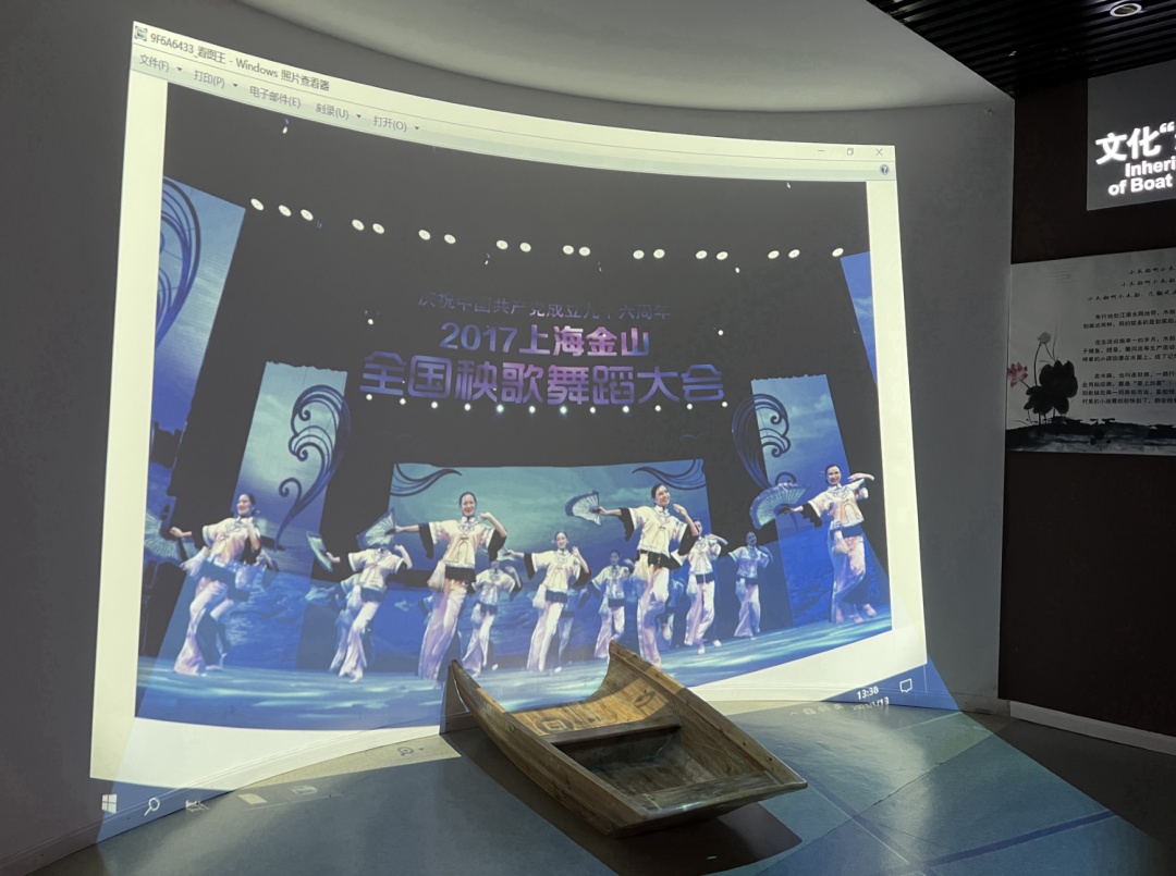 金山渔家秧歌非遗馆坐落于金山高新区恒顺路370号,分为展示馆及传习室。展示馆位于市民文化礼堂,对金山渔秧发展进程中渔秧舞蹈动作演变过程、渔家姑娘服饰道具、渔村风俗习惯等历史资料,通过幻灯片、展板、实物等形式进行展示。