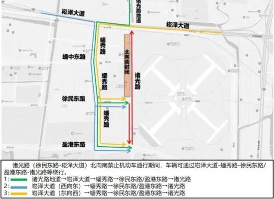 据悉,现诸光路受已经开业的商业地块和诸光路地道下匝道制约,在保障国展中心环路(外环西路)不占用的条件下,扣除车站基坑施工所需要的最小空间,可以用来通行的路幅最窄处不足14米,无法满足道路“占一还一”的要求。因此,整个施工期间,诸光路改为单向三车道,保障诸光路由南向北单向通行,开通诸光路西侧与诸光路平行的蟠秀路临时道路(双向四车道+一根可变车道),疏解诸光路由北向南的车流,既保证国展中心西侧车辆的顺利进出,又保证诸光路对过路车流的通行能力。后续相关单位还将视道路通行的实际情况,进一步优化举措,持续满足周边道路的通行需求。