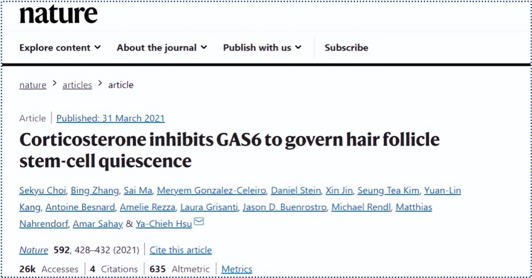 其实关于慢行压力和脱发的关联一直都有研究,而近些年来,其机制也被揭示了,比如发表在《nature》上的这篇文章就是一个对压力和脱发关系的机制研究。