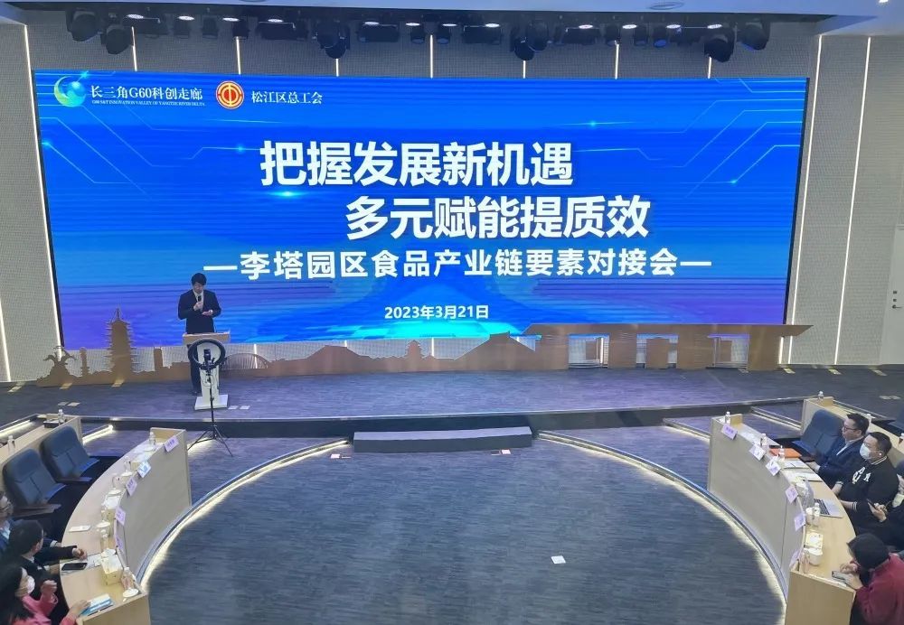 为进一步发挥长三角G60科创走廊资源优势,促进园区食品产业链高质量发展,强化上下游企业协调联动,3月21日下午,李塔园区在长三角G60科创走廊联席办、松江区总工会的支持下举办了一场“把握发展新机遇 多元赋能提质效——食品产业链要素对接会”,本次会议在线上线下同步进行,线下60余家、线上近百家食品企业参与本次会议。