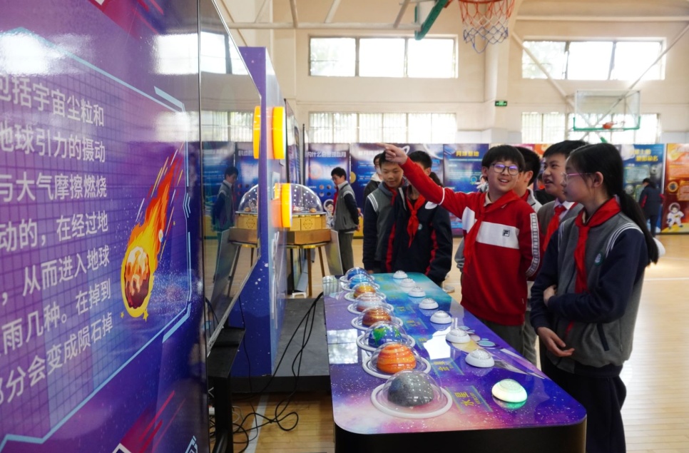 近日,五角场街道举办了一场“飞跃地球”航天系列科技展。现场,育鹰学校的同学们兴奋地讨论着关于宇宙和航天的知识,甚至还有天文社团的同学当起了讲师,为大家解锁更多的太空密码。