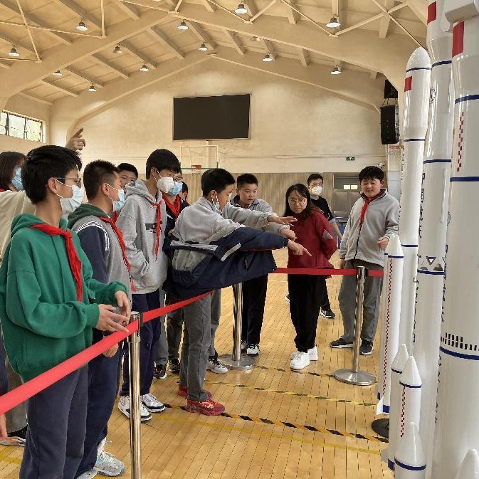 此次航天展是五角场街道引进上海市科技志愿服务助力“社区书院”建设项目的一次尝试,该项目由上海市科技基金会资助,智照文化倾力打造。展览为期3天,两校共有596名同学参观。