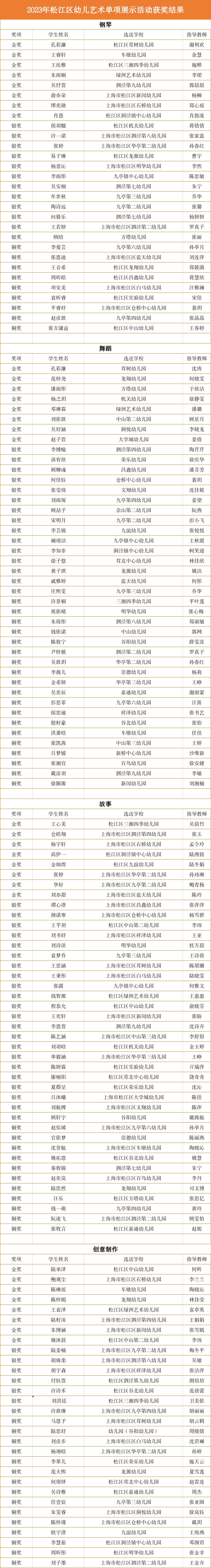 2023年松江区幼儿艺术单项展示活动由松江区教育局主办,区青少年活动中心承办,经过赛事发动、选拔、市级推送三个环节,在春意盎然的三月落下帷幕。全区近200名幼儿参与此次比赛,比赛分设创意制作、故事、钢琴、舞蹈四个项目,经区赛评选,获得金奖32名,获得银奖56名,获得铜奖54名,最终推选32名学生参加市级比赛,让我们一起看看有没有你认识的小小艺术家吧。