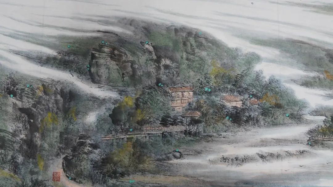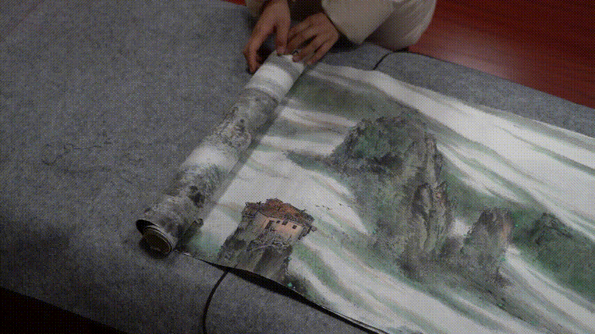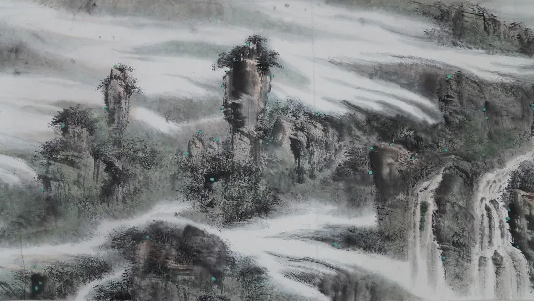 退休后,籍惠良心中构思着要完成一幅山水长卷,将自己走过的路和看过的风景画下来。开始落笔后,籍惠良又遇到了新的难题——家中供他作画的地方只有一个长宽80厘米的饭桌,这给画面的衔接增添了难度。为了做到画风统一,他在泼墨前需考虑好不同场景的转换。“云层、水流的方向,山石的角度要浑然一体。虽是分段作画,但不能让人产生断裂之感。”籍惠良表示。
